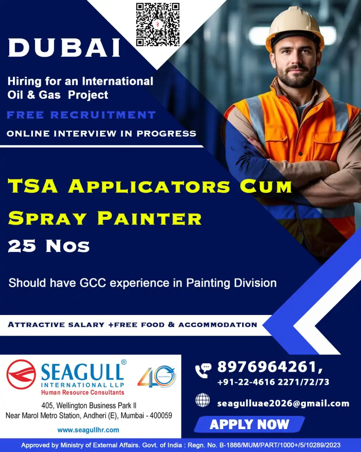Apply for TSA Applicator Cum Spray Painter positions in Dubai. GCC experience in painting division needed. Free recruitment with online interviews. Attractive benefits.
