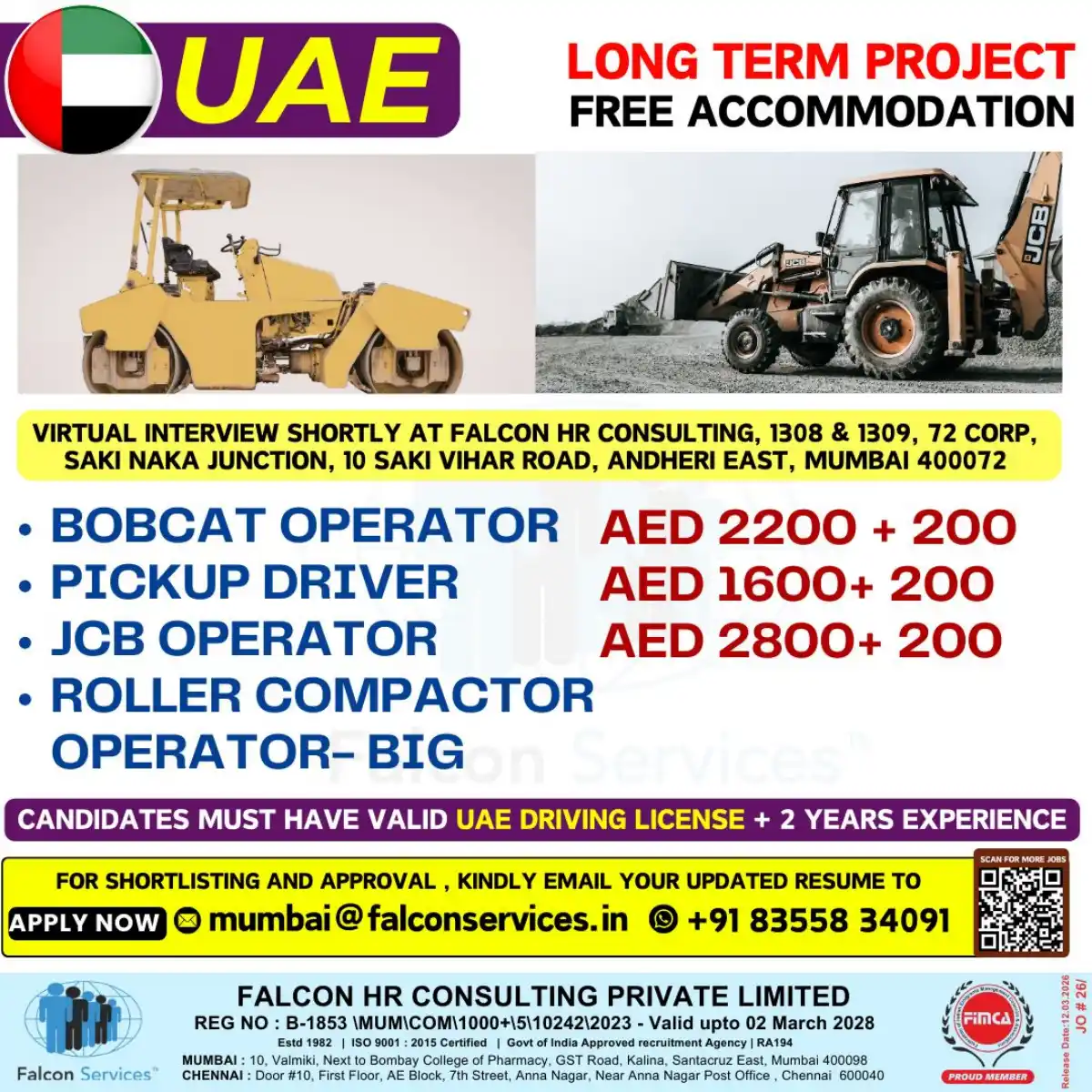 Immediate openings for skilled construction equipment operators in UAE. Free accommodation, competitive salaries, and long-term project stability. Valid UAE license and 2 years experience required.
