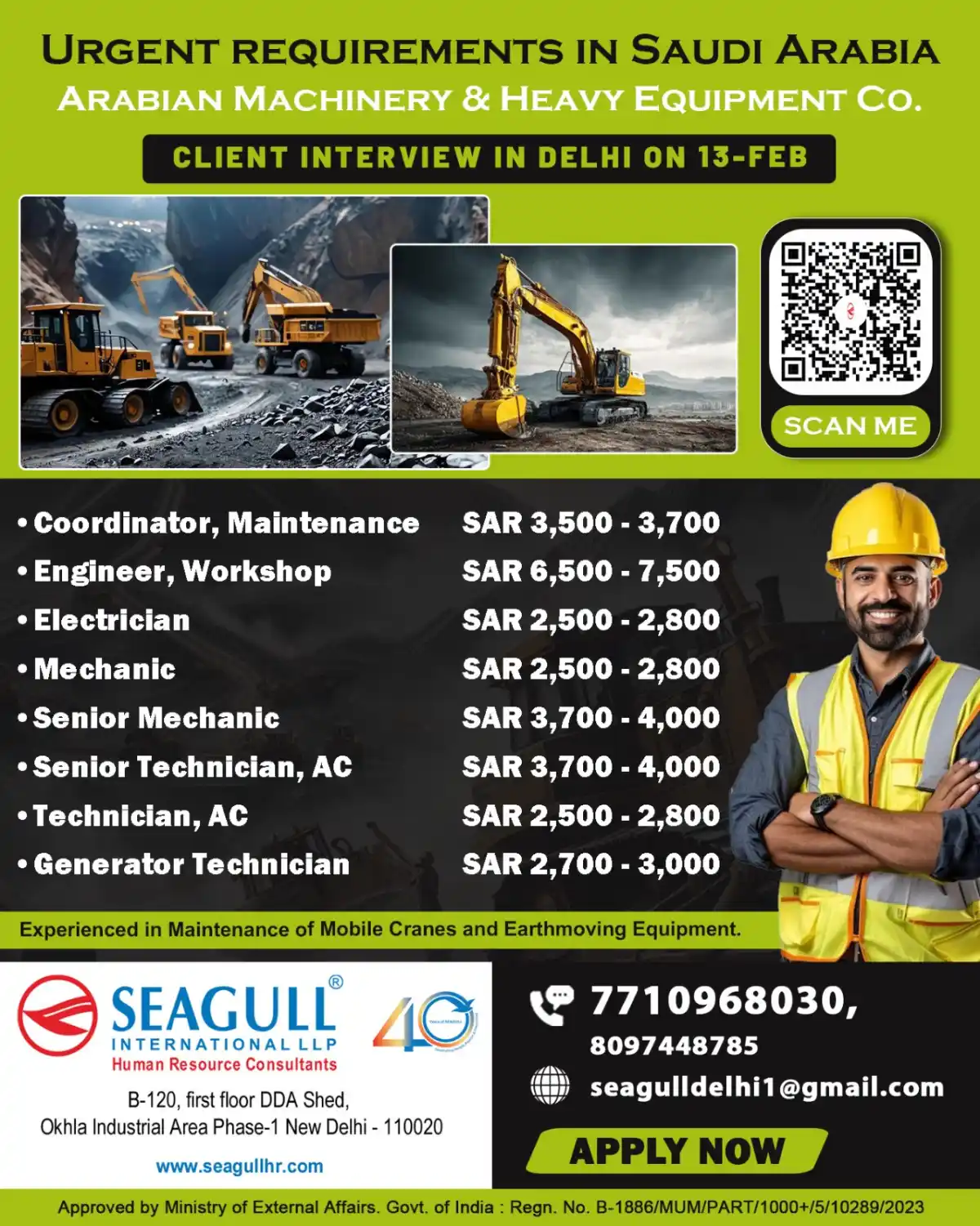 Urgent Saudi Arabia Jobs – Interview on 13-Feb Delhi